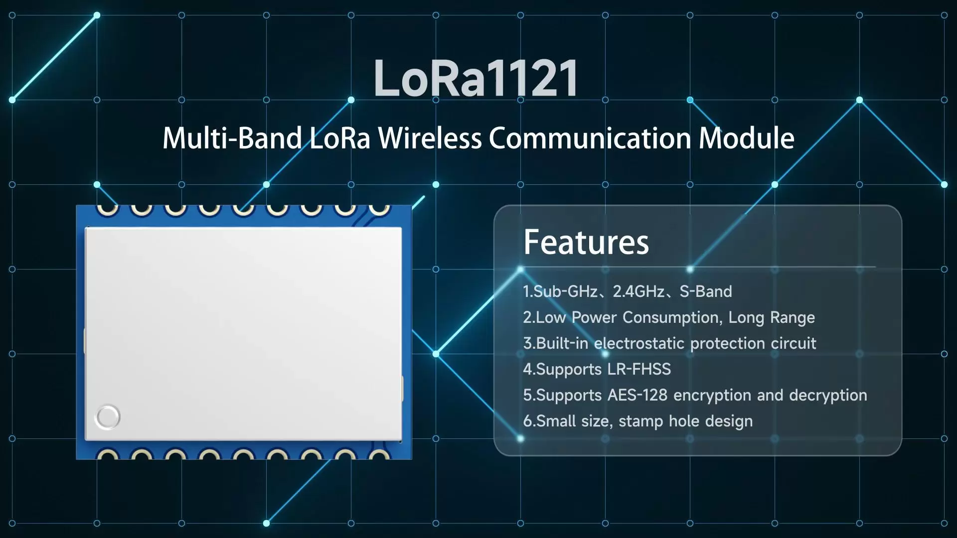 LoRa1121 is produced and tested strictly using lead-free processes, and comply with RoHS and REACH standards,LoRa1121 has obtained FCC and CE Certified.